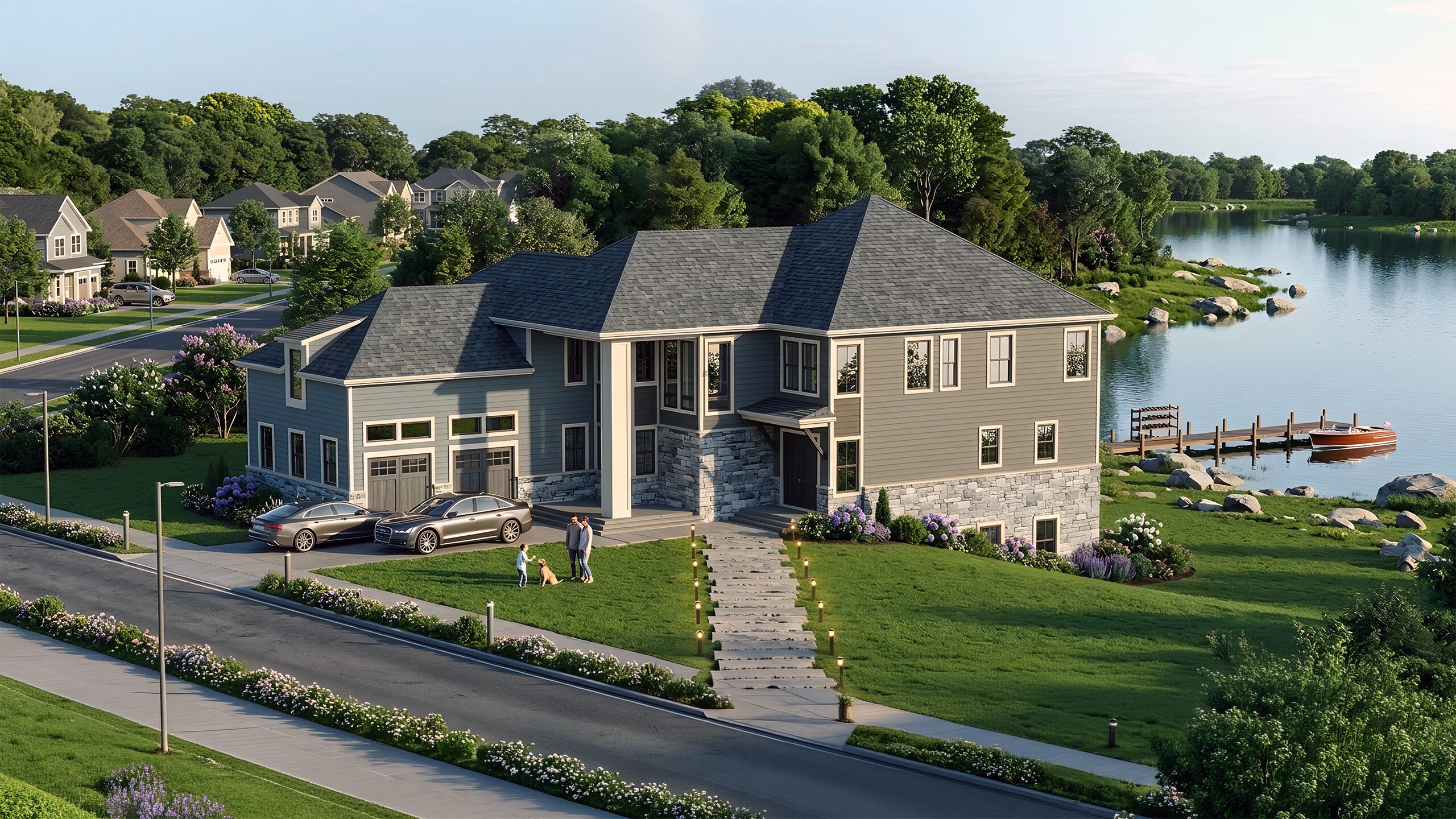 The BeechWood Residence in Lake Norman, North Carolina, is a Refined Interpretation of Modern Craftsman Architecture Designed to Complement its Tranquil Lakeside Setting. The Exterior Features Tiered, Asymmetrical Massing that Responds to the Natural Slope of the Terrain, Anchored by Substantial Fieldstone Masonry Wainscoting that Grounds the Structure Visually. This Rugged Stone Base is Balanced by Cool-Toned Horizontal Lap Siding and Crisp White Columns, Creating a Clean yet Welcoming Architectural Expression.